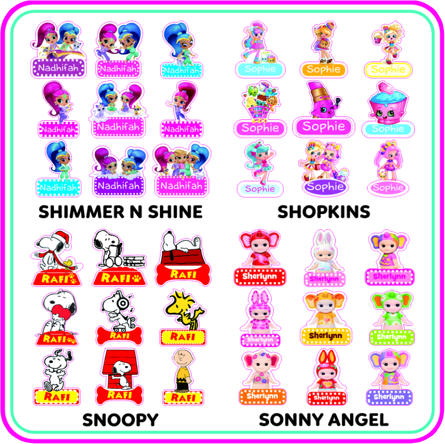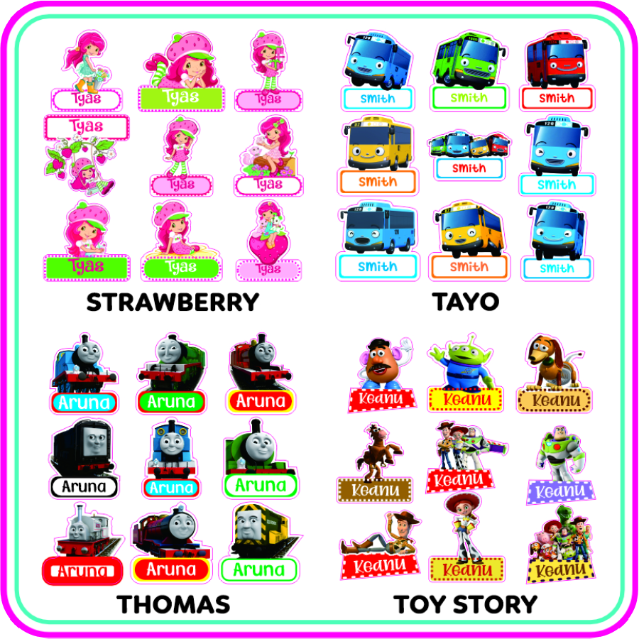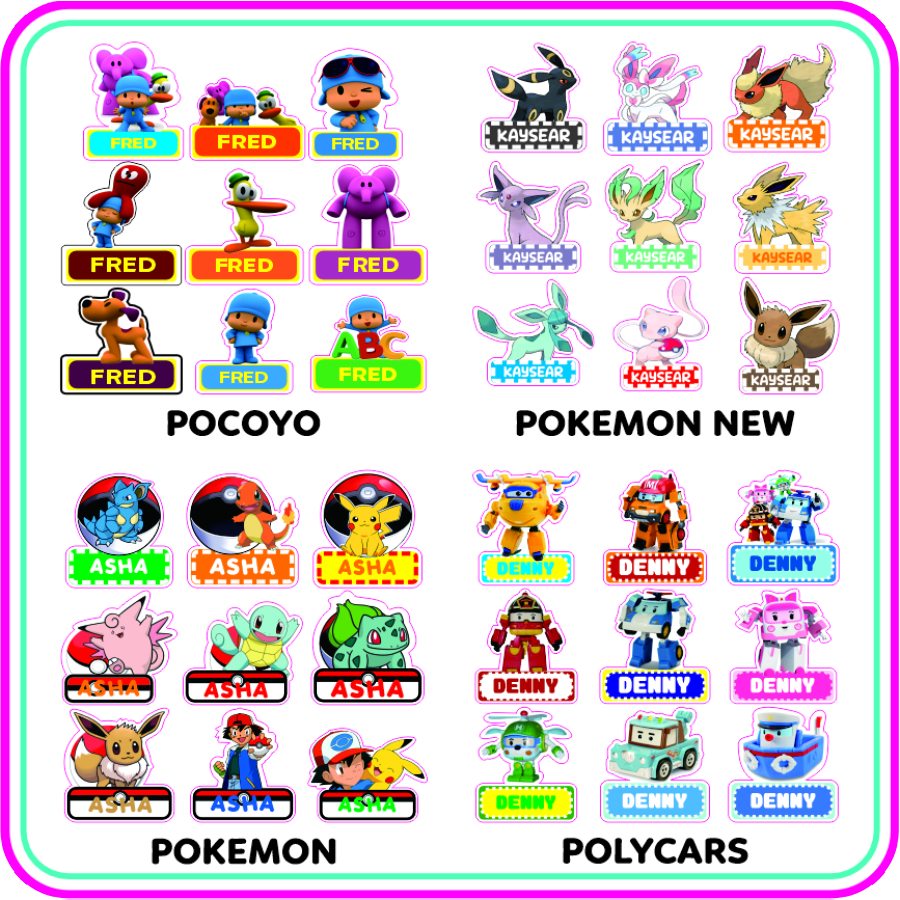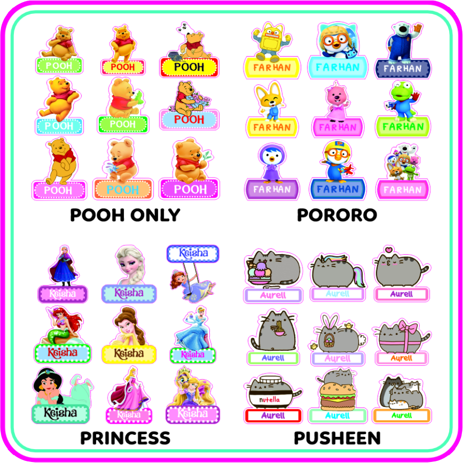 Pocoyo, Pokemon, Pokemon New, Polycars, Pooh Only, Pororo, Princess, Pusheen, Rilakkuma, Roblox, Sanrio, Sesame Street, Shimmer and Shine, Shopkins, Snoopy, Sonny Angel, Spiderman, Spongebob, Star, Starwars, Strawberry, Tayo, Thomas, Toy Story, Transformers, Tsum Tsum, Tsum Tsum Princess, Turtle, Unicorn, Winnie The Pooh